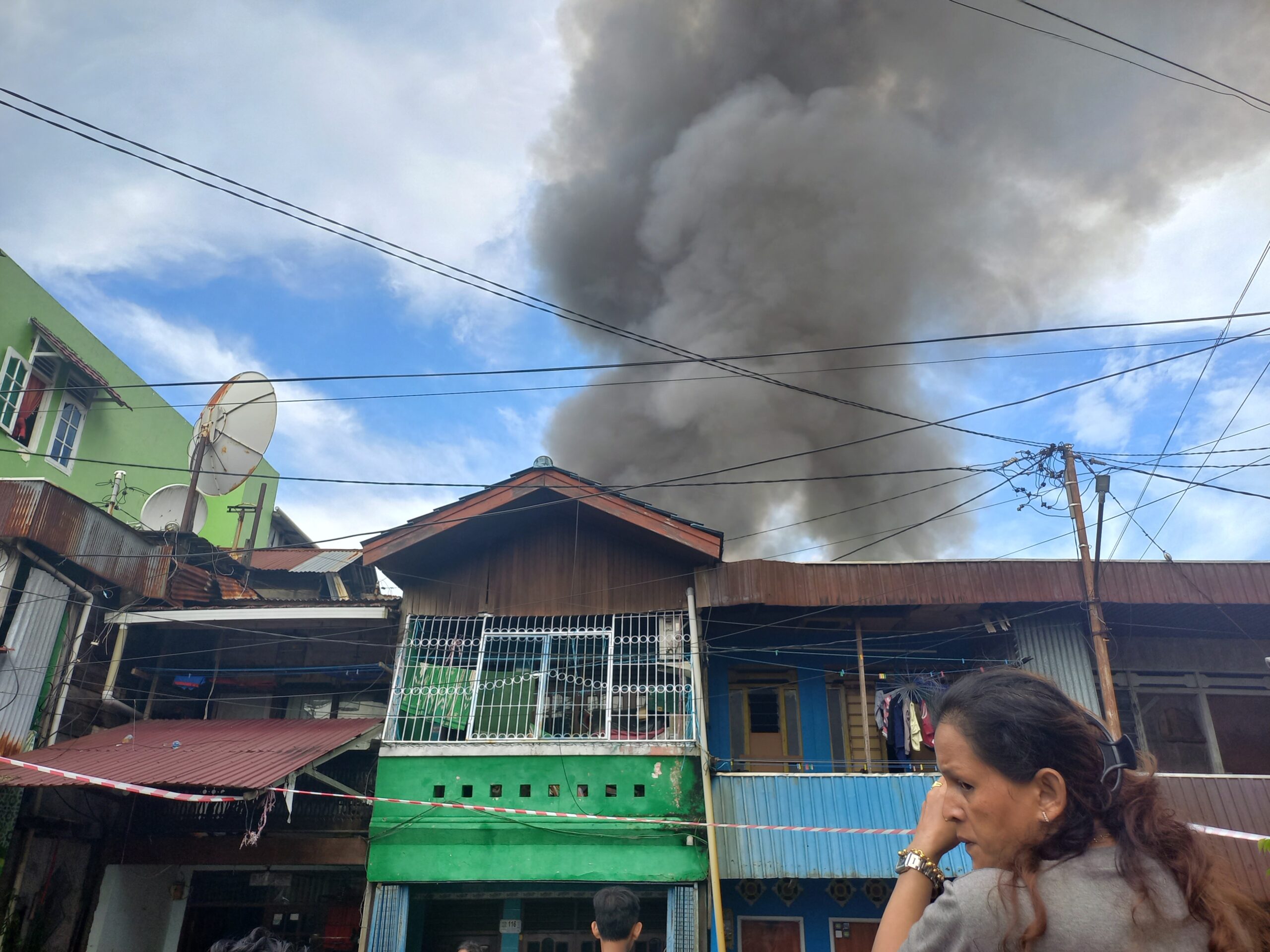 Api dengan cepat membesar mengingat lokasi yang terbakar rumah warga terbuat dari semi permanen, ditambah banyaknya warga yang berkerumun membuat petugas BPBD mengalami kendala di lapangan.