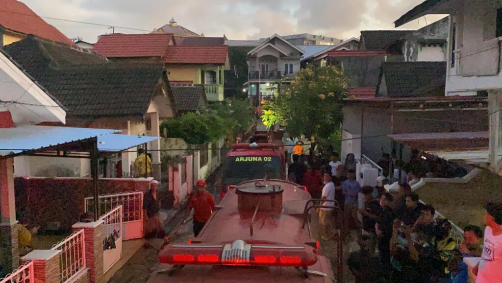 “Kami pulang dari arisan. Begitu sampai ada api. Saya langsung ambil tindakan telpon damkar, teman-teman tagana Sumber Rejo akhirnya datang semuanya,” kata Supriyanto.