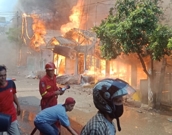 Belum diketahui pasti jumlah rumah yang terbakar dan awal mula api dari mana, namun beredar kabar dari warga asal api berasal dari kompor salah satu rumah yang terbakar. Hingga saat ini petugas pemadam dari BPBD masih berjibaku memadamkan api yang menghanguskan hampir 10 rumah warga.