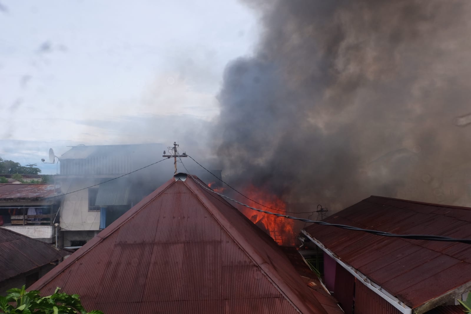 Terlihat petugas pemadam sempat kewalahan dalam melakukan pemadaman karena akses ke lokasi kejadian sangat sempit dan juga berliku.