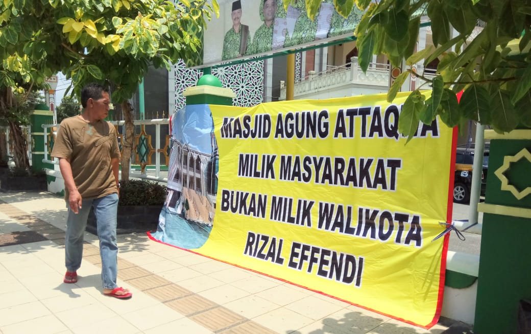Diketahui, spanduk dipasang warga RT 24,25 dan 26 yang kecewa akibat tidak dilibatkan dalam pemilihan kepengurusan Masjid Agung At Taqwa sejak 2015 lalu.