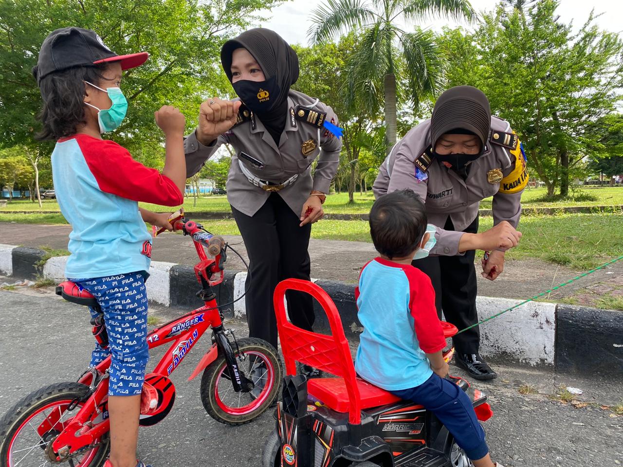 BALIKPAPAN, Inibalikpapan.com — Direktorat Lalulintas Polda Kaltim terus melakukan upaya preventif dan pre-emtif selama pelaksanaan Operasi Zebra Mahakam 2020, kali ini personil Polwan Ditlantas Polda Kaltim membagikan masker dan snack serta memberikan himbauan protokol Kesehatan kepada warga di daerah Melawai dan Pelabuhan Semayang Balikpapan, Minggu (08/11/2020).
