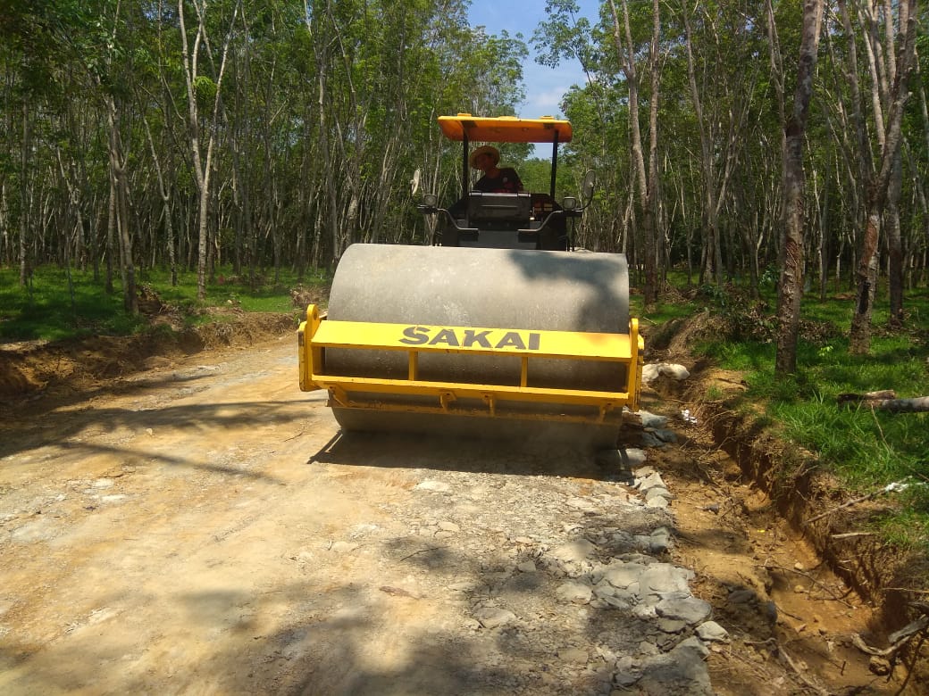 “Untuk hari ini tahap memadatkan bahan material pengeras jalan, semoga tidak ada hujan,supaya target tercapai,” ujarnya.