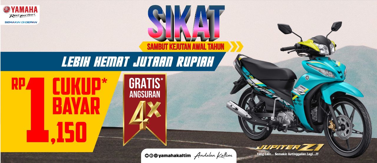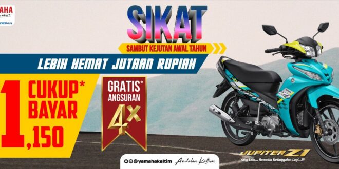 “Dengan promo SIKAT, alias Sambut Kejutan Awal Tahun, kalian yang ingin membawa pulang motor kencang di kelasnya yakni Yamaha Jupiter Z1 cukup hanya dengan membayar uang muka alias down payment (DP) sebesar Rp 1,150 Ribu* (syarat dan ketentuan berlaku), ” katanya.