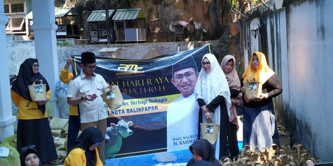 BALIKPAPAN, Inibalikpapan.com — Wakil Wali Kota Rahmad Mas’ud bersama istri Hj Nurlena ikut mengkampenyakan penggunaan kantong ramah lingkungan untuk kantong daging kurban.