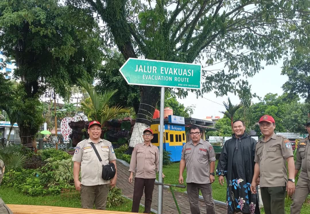 Di tengah situasi tersebut, Kelurahan Klandasan Ulu bersama BPBD Kota Balikpapan dan DP3AKB tetap melanjutkan pemasangan rambu jalur evakuasi bencana di kawasan Taman Bekapai, sebagai bagian dari program mitigasi bencana dan kesiapsiagaan masyarakat.
