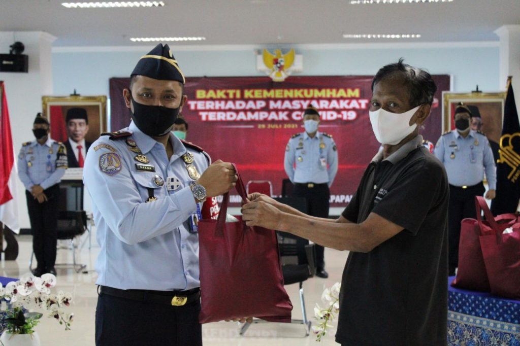 Pada kesempatan yang sama, Kantor Imigrasi Kelas I TPI Balikpapan juga turut melaksanakan kegiatan “Kumham Peduli, Kumham Berbagi” dengan menyalurkan 70 paket sembako. Kepala Kantor Imigrasi Balikpapan Rakha Sukma Purnama menuturkan, “Kegiatan bakti sosial ini sebagai wujud nyata Kementerian Hukum dan HAM dalam membantu masyarakat yang terdampak akibat pandemi Covid-19.