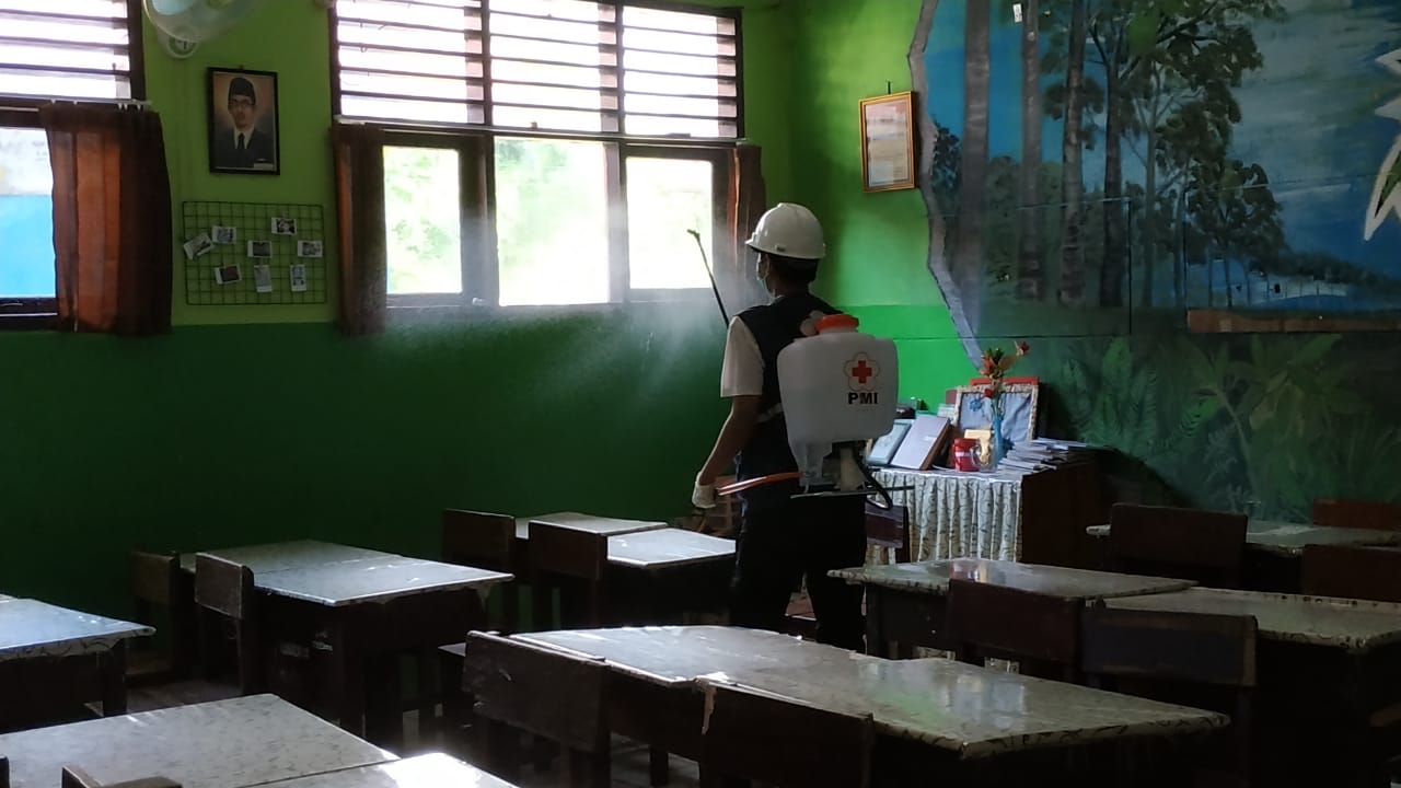 Kerahkan Sukarelawan, PMI Balikpapan Semprot Disinfektak di Sekolah