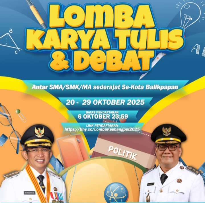 BALIKPAPAN,Inibalikpapan.com– Semangat Sumpah Pemuda kembali menggema di Kota Balikpapan. Dalam rangka memperingati Hari Sumpah Pemuda (HSP) ke-97 tahun 2025, Badan Kesatuan Bangsa dan Politik (Kesbangpol) Kota Balikpapan siap menggelar Lomba Karya Tulis dan Debat Kebangsaan tingkat SMA/SMK/MA se-Kota Balikpapan.