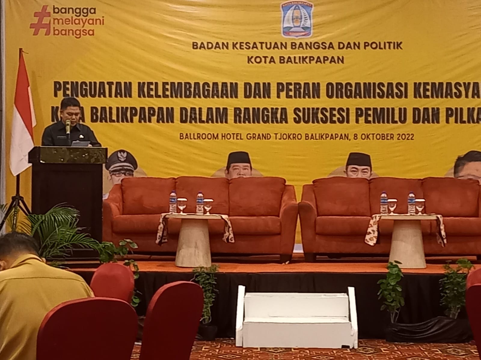 BALIKPAPAN,Inibalikpapan.com – Badan Kesatuan Bangsa dan Politik (Kesbangpol) Kota Balikpapan melaksanakan kegiatan penguatan kelembagaan dan peran organisasi kemasyarakatan kota Balikpapan, dalam rangka suksesi pemilu dan Pilkada 2024, Selasa (8/11/2022) di Hotel Grand Tjokro Balikpapan.