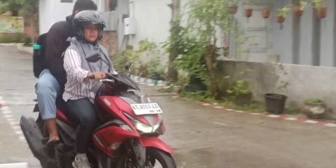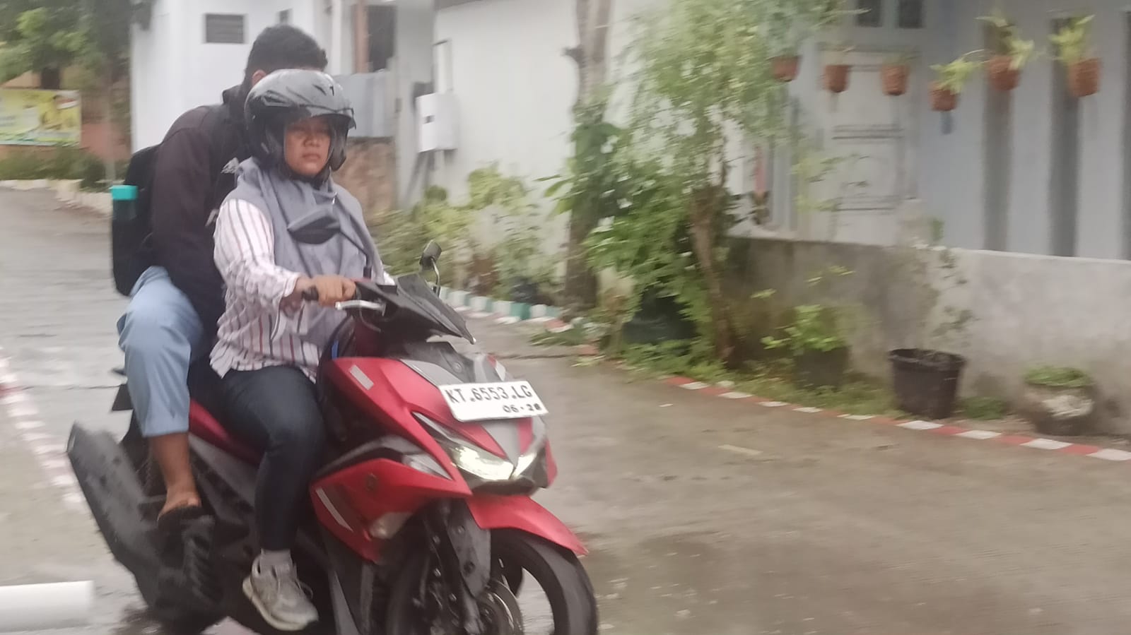 ” Saya kan kerja tapi waktu anak-anak masih SMP. Kita berboncengan bertiga. Kan rumah di kilo 8 antar anak dua-duanya sekolah di Batakan di SMP 23, “tutur ibu dua anak ini.