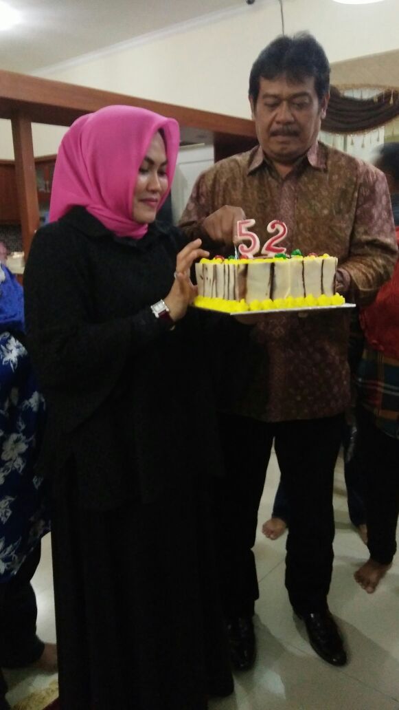 Abdulloh mengaku cukup kaget karena acara syukuran hari ulang tahun sudah disiapkan oleh istri tercinta Yulianti setibanya dari luar kota.