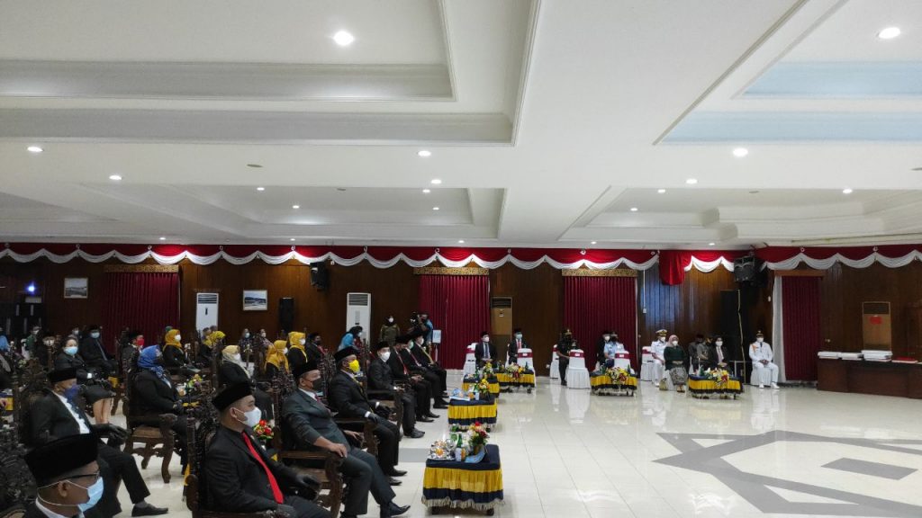 Dalam paripurna istimewa diikuti tidak lebih dari 100 orang termasuk 15 media mengingat penyebaran virus covid masih tinggi.