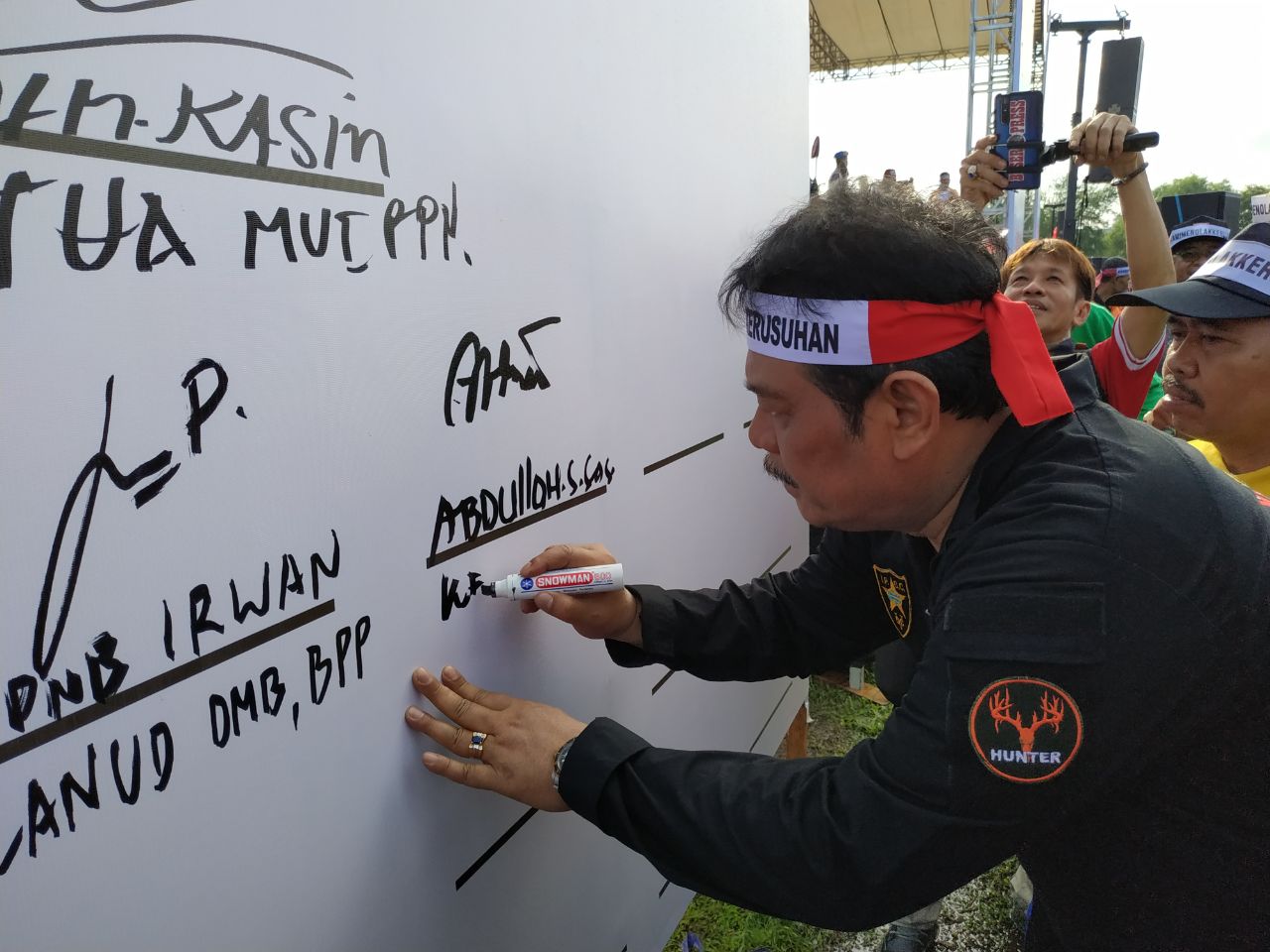 Ketua DPRD Balikpapan Abdulloh ikut serta membubuhkan tandatangan dukugan deklrasi menolak kerusuhan yang digelar Polda Kaltim.