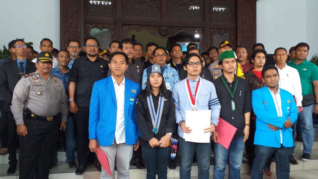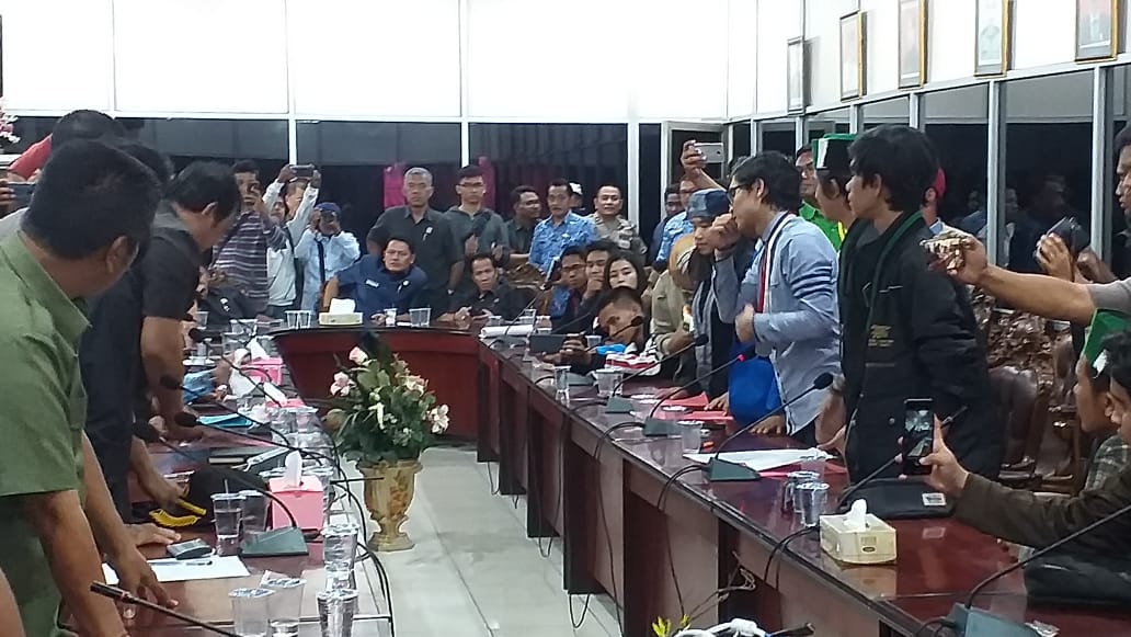 Setelah tuntutan disampaikan dan dilanjutkan diskusi mengenai apa yang disampaikan, ketua DPRD Abdulloh dan wali kota Rizal menanggapi, sesaat sebelum menerima tuntutan tersebut.