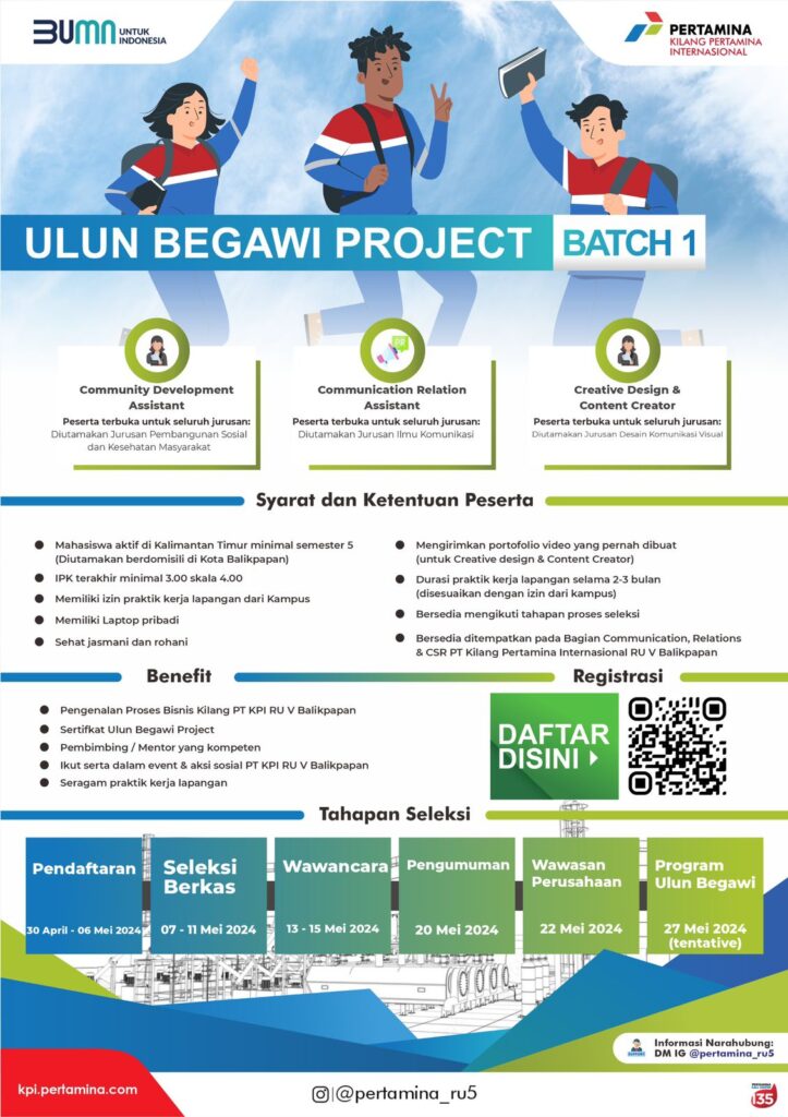 Program ini merupakan bagian dari upaya kilang Balikpapan untuk mendukung kesiapan calon tenaga kerja. Melalui inisiatif Strategic Initiative, perusahaan membuka kesempatan bagi mahasiswa semester lima ke atas. Untuk melakukan praktik kerja lapangan di Bagian Komunikasi, Hubungan Masyarakat, & CSR.