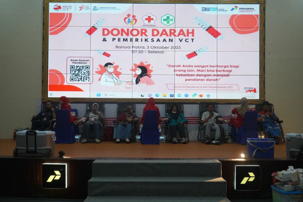 BALIKPAPAN, Inibalikpapan.com – Pertamina melalui PT Kilang Pertamina Internasional (KPI) unit Balikpapan bersama PMI Balikpapan kembali menggelar kegiatan donor darah dan kegiatan Voluntary Counselling & Testing VCT HIV/AIDS . Kegiatan ditujukan seluruh pekerja dan mitra kerja Pertamina Group yang dilaksanakan di Benua Patra Balikpapan, Selasa (03/10/2023).