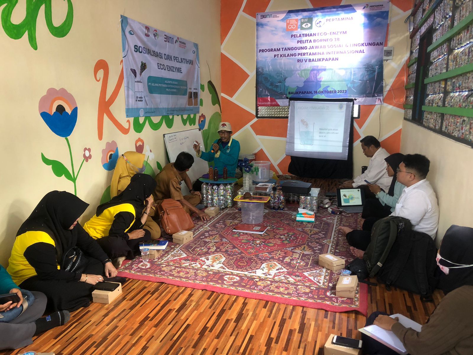 BALIKPAPAN,Inibalikpapan.com – PT Kilang Pertamina Internasional (KPI) Unit Balikpapan bersama kelompok binaan Pelita Borneo 38 melakukan sosialisasi dan pelatihan pembuatan Eco-Enzyme.