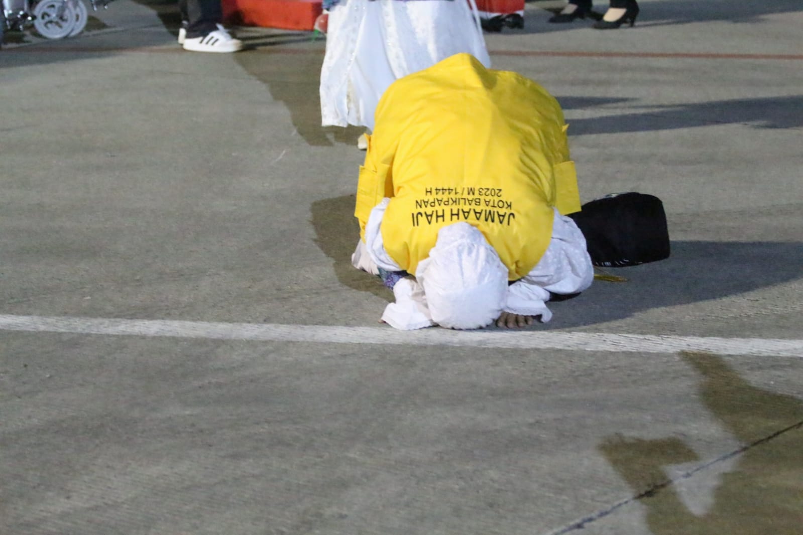 Mereka yang tiba dan turun dari pesawat dalam kondisi sehat langsung melakukan sujud syukur karena dapat kembali ke tanah air dan keluarga dalam kondisi selamat dan lancar menunaikan ibadah haji tahun ini.
