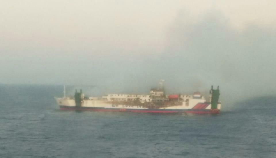 Meski terbakar di tengah laut, seluruh penumpang dan Anak Buah Kapal dipastikan selamat karena diselamatkan kapal yang melintas.