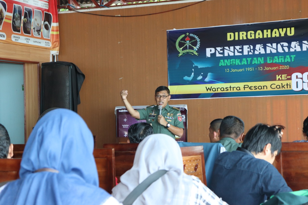 “Mari kita bersinergi untuk menaikkan citra TNI AD. Marilah isi diri kita dengan pengetahuan dan ilmu-ilmu yang semakin lama semakin berkembang. Tidak ada kata tua (umur) untuk belajar demi kemajuan TNI AD dan bangsa Indonesia”, ujar Kapen.