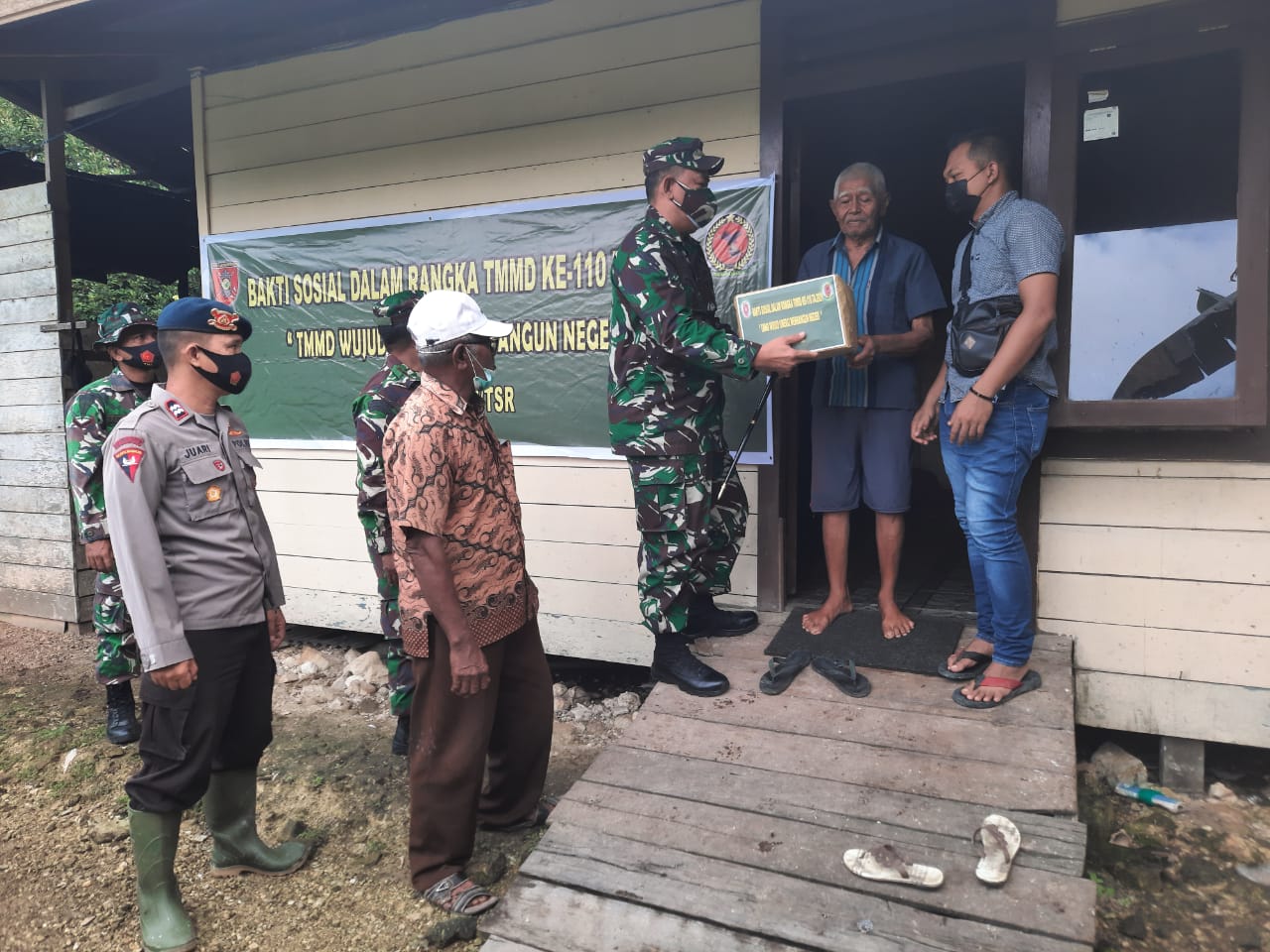 TANJUNG SELOR, Inibalikpapan.com — Menyikapi perkembangan pandemi virus covid-19 yang berdampak kepada seluruh sendi masyarakat di wilayah Kab Bulungan, Satgas TMMD 110 Kodim 0903/Tanjung Selor menggelar Bakti Sosial, Kegiatan Bakti Sosial yang bertemakan “TMMD Wujud Sinergi Membangun Negeri.
