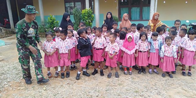 BALIKPAPAN, Inibalikpapan.com – Program TNI Manunggal Membangun Desa (TMMD) 104 kali ini menyasar anak-anak usia dini. Seperti yang dilakukan Serda Herry Anggota Satgas TMMD.