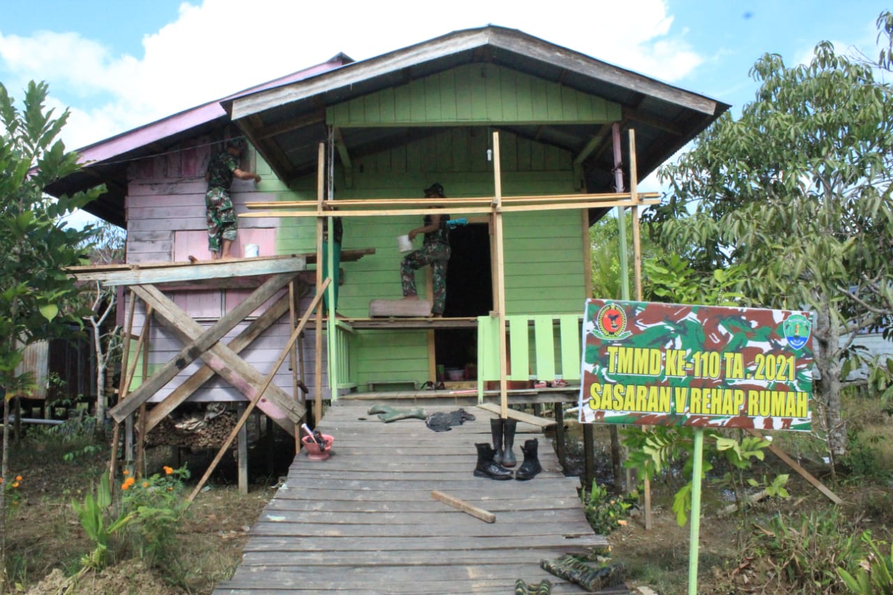 TANJUNG SELOR, Inibalikpapan.com — Kodam 0903 Tanjung Selor juga memastikan dalam program TMMD untuk rehab rumah memastikan kualitas pengecetan rumah yang direhab. Salah satunya mengecat rumah milik Sawi warga Desa Teras Baru, Kecamatan Tanjung Palas, Senin (22/3/2021).