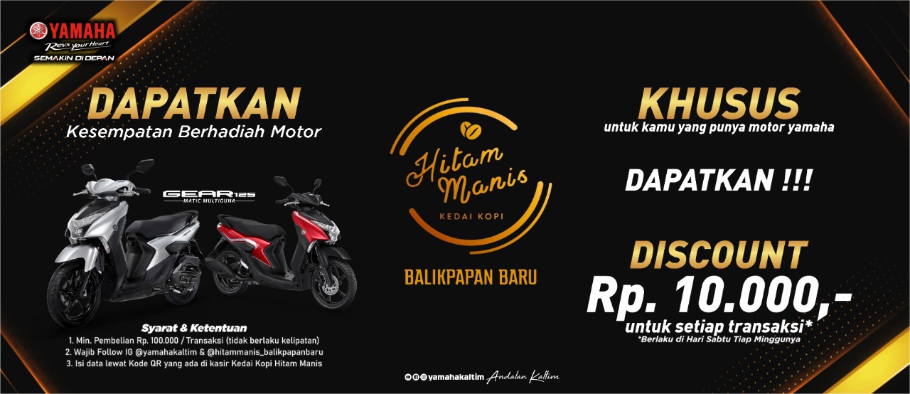 Yamaha kerap memberikan promo menarik kepada pelanggannya, kali ini pabrikan berlogo Garputala ini berkolaborasi dengan UMKM lokal yakni Kedai Kopi Hitam Manis Balikpapan Baru.