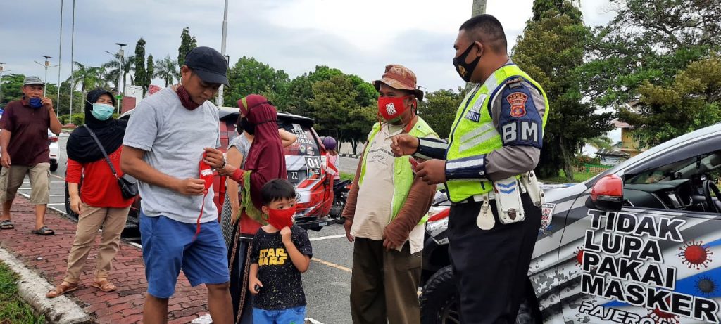 Ada 5 titik pembagian masker yang dilakukan komunitas Pajero Indonesia One yakni Kebun Sayur, Lapangan Merdeka, Bumi Nirwana, Manggar dan parkir E Walk.