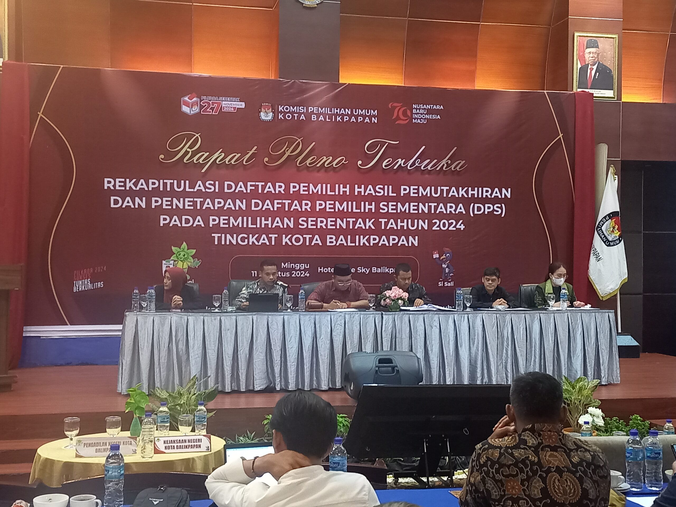 BALIKPAPAN,Inibalikpapan.com – Komisi Pemilihan Umum (KPU) Kota Balikpapan Rapat Pleno Terbuka Rekapitulasi Daftar Pemilih Hasil Pemutakhiran dan Penetapan Daftar Pemilih Sementara (DPS) Pada Pemilihan Serentak Tahun 2024 di Tingkat Kota Balikpapan, di ballroom hotel Blue Sky, Minggu (11/8/2024).