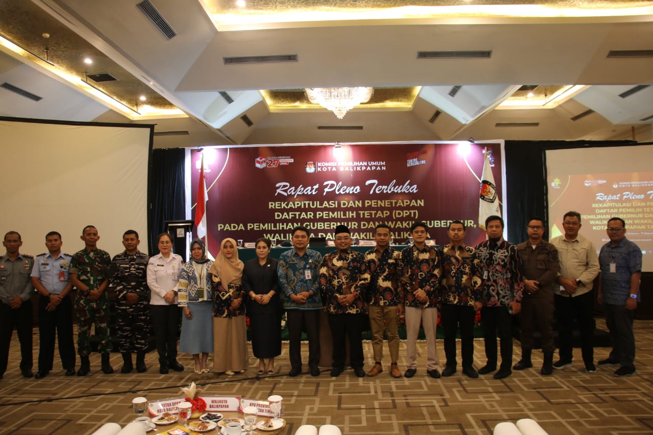 BALIKPAPAN,Inibalikpapan.com – Komisi Pemilihan Umum (KPU) Kota Balikpapan melaksanakan rapat pleno rekapitulasi dan penetapan untuk menentukan Daftar Pemilih Tetap (DPT) yang bisa menggunakan hak pilihnya pada Pilkada serentak 2024 ini, Kamis (19/9/2024).