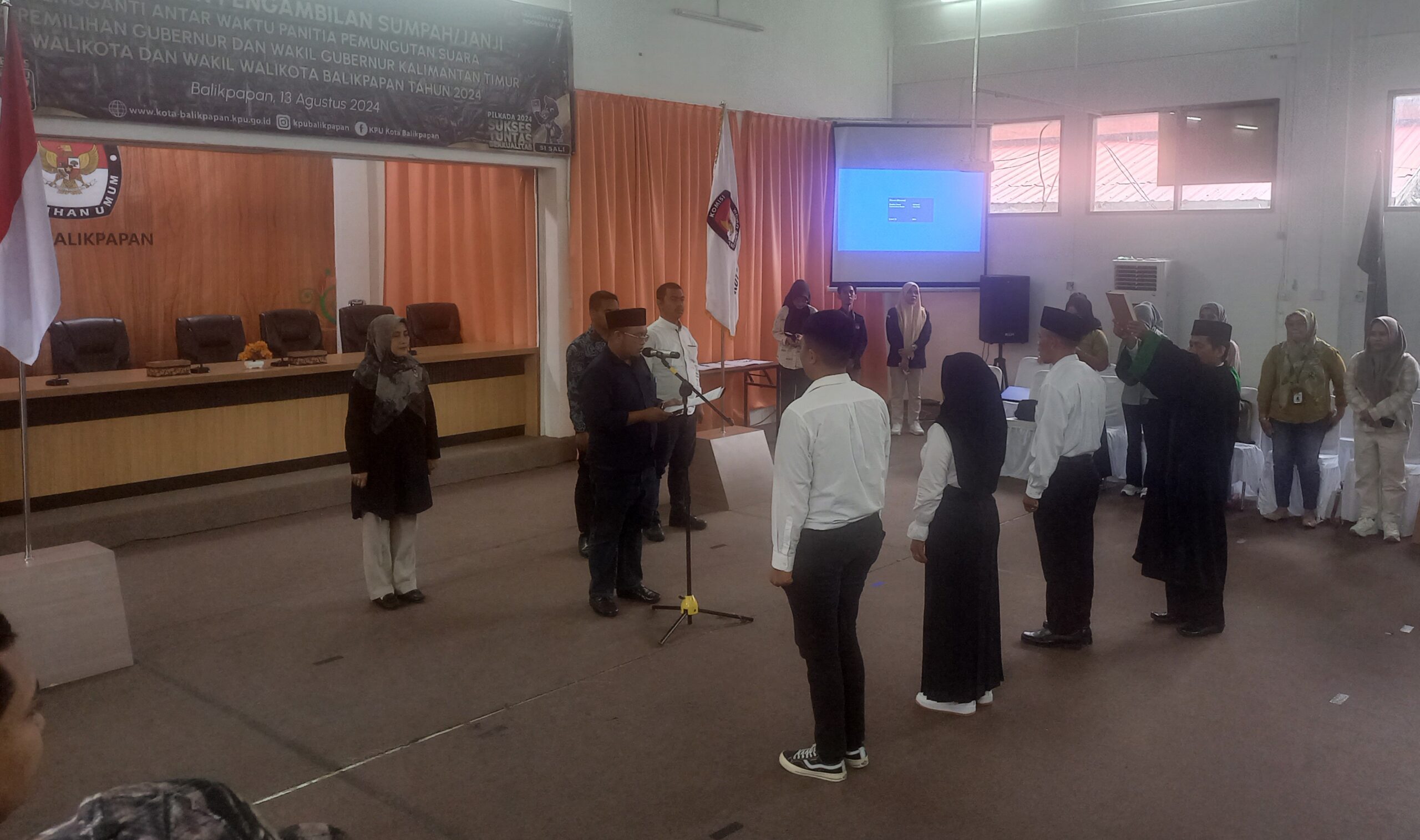 Pelantikan ini dipimpin langsung Ketua KPU Kota Balikpapan Prakoso Yudho Lelono didampingi Komisioner KPU Bidang Hukum M Rizal. Bidang Datin Makta dan Bidang Teknis Farida Asmauanna di Aula Kantor KPU Kota Balikpapan, Selasa (13/8/2024).