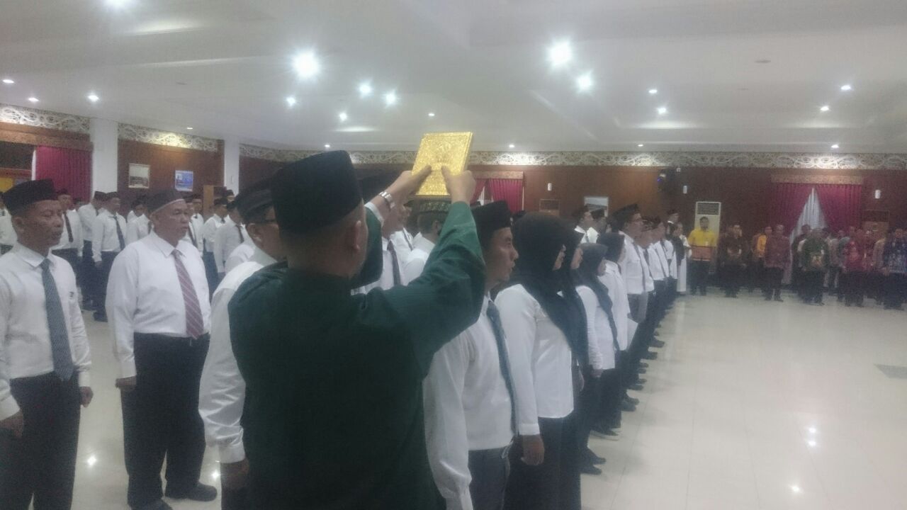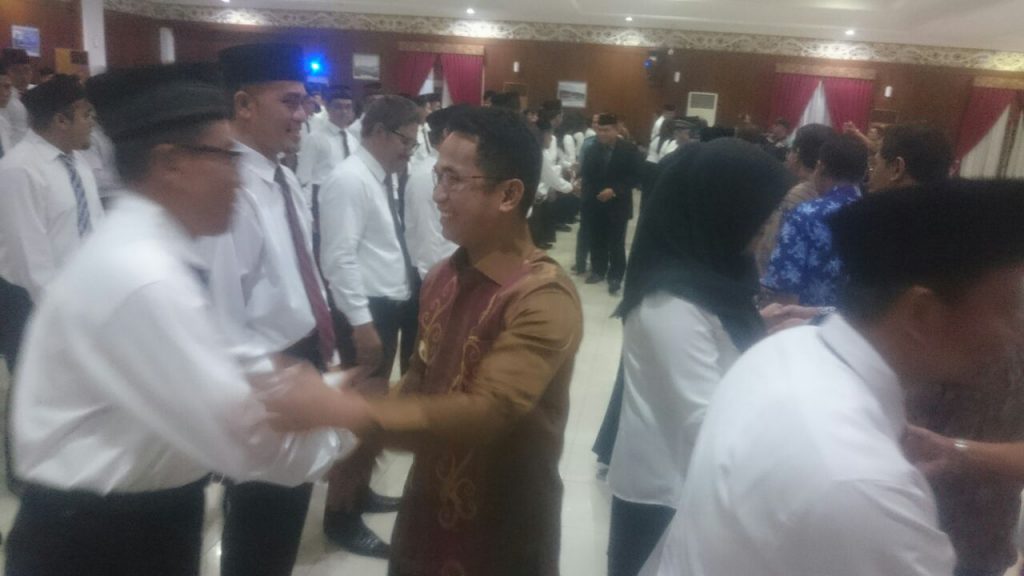 Usai pelantikan Plt Wali Kota Rahmad Mas’ud bersama muspida dan KPUD, komisiner Panwaslu memberikan ucapan selamat kepada 18 PPK dan 102 anggota PPS.