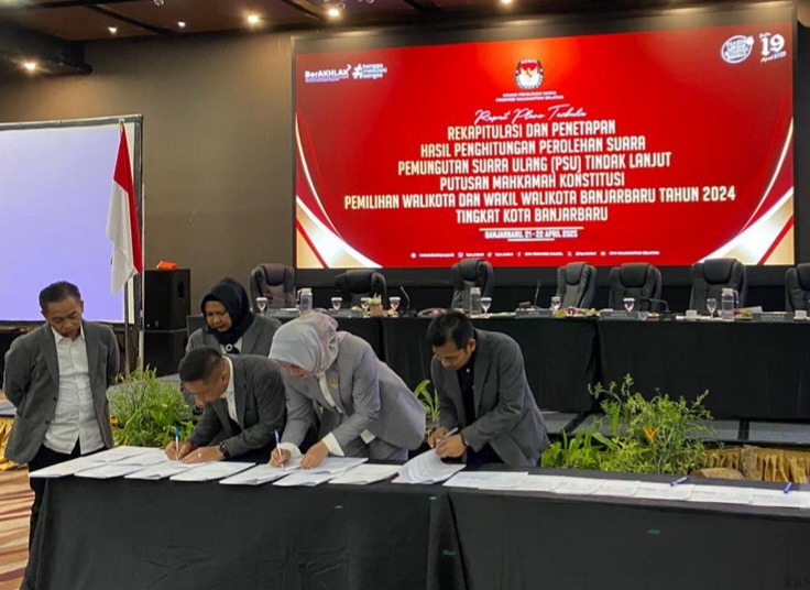 BANJARBARU, inibalikpapan.com – Komisi Pemilihan Umum (KPU) Kalimantan Selatan resmi menetapkan hasil Pemungutan Suara Ulang (PSU) Pemilihan Wali Kota dan Wakil Wali Kota Banjarbaru, dalam rapat pleno terbuka yang berlangsung di Banjarbaru, Senin (21/4/2025). PSU ini merupakan tindak lanjut dari putusan Mahkamah Konstitusi (MK).