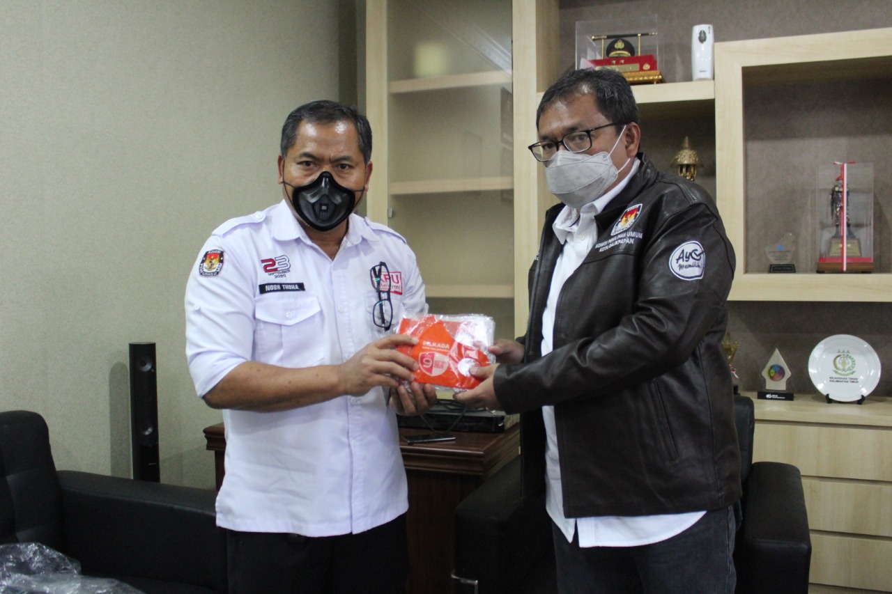 Pertemuan dilanjutkan dengan menyerahkan jaket kulit sosialisasi Pilkada 2020 dari Ketua KPU Noor Thoha kepada Kepala Kejaksaan Negeri Balikpapan dengan disaksikan seluruh Komisioner dan para Kepala Seksi Kejaksaan Negeri Balikpapan.