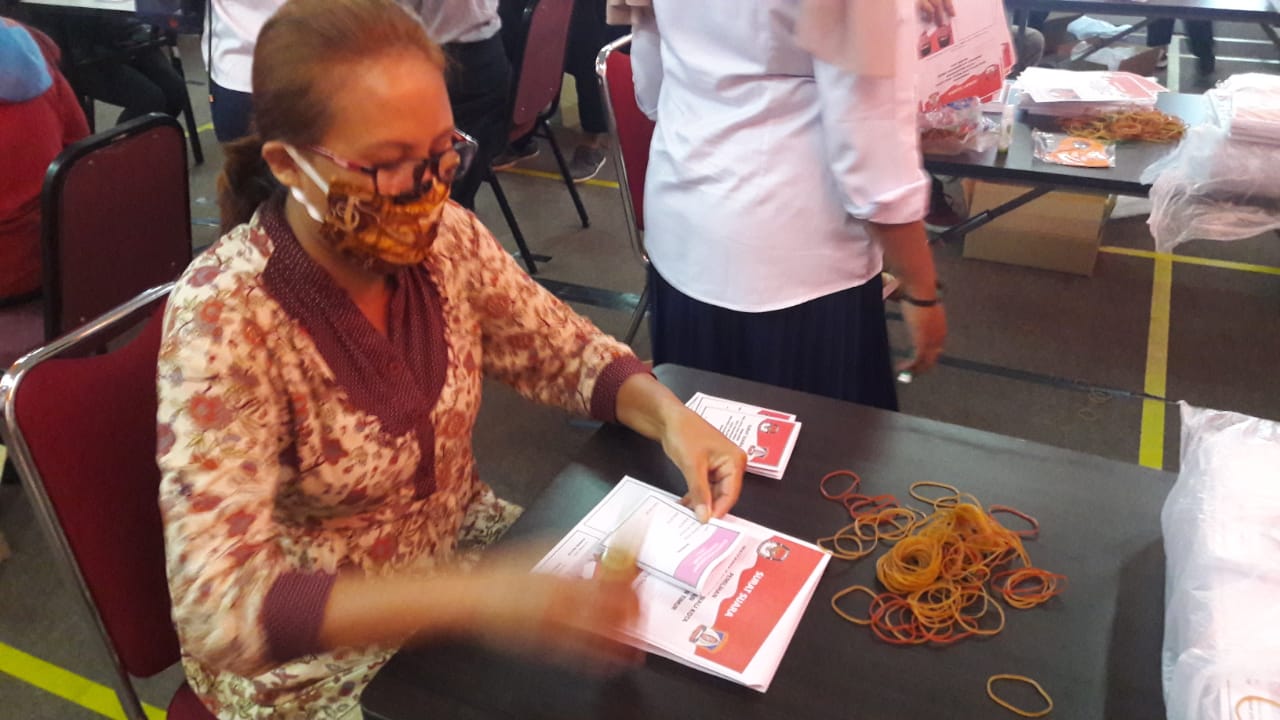 BALIKPAPAN, Inibalikpapan.com — KPU Kota Balikpapan mulai menyortir surat suara Pilkada Balikpapan 2020. Sebanyak 50 orang petugas melakukan penyortiran sekaligus melipat kertas suara dengan target rampung selama lima hari kerja.