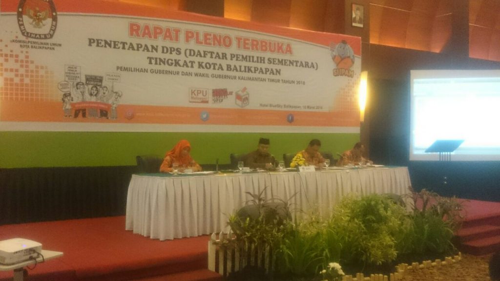 BALIKPAPAN, Inibalikpapan.com – Pleno KPUD Balikpapan menetapkan Daftar pemilih Sementara (DPS) pemilihan Gubernur dan wakil Gubernur Kaltim 2018 untuk kota Balikpapan sebanyak 419.718 pemilih.