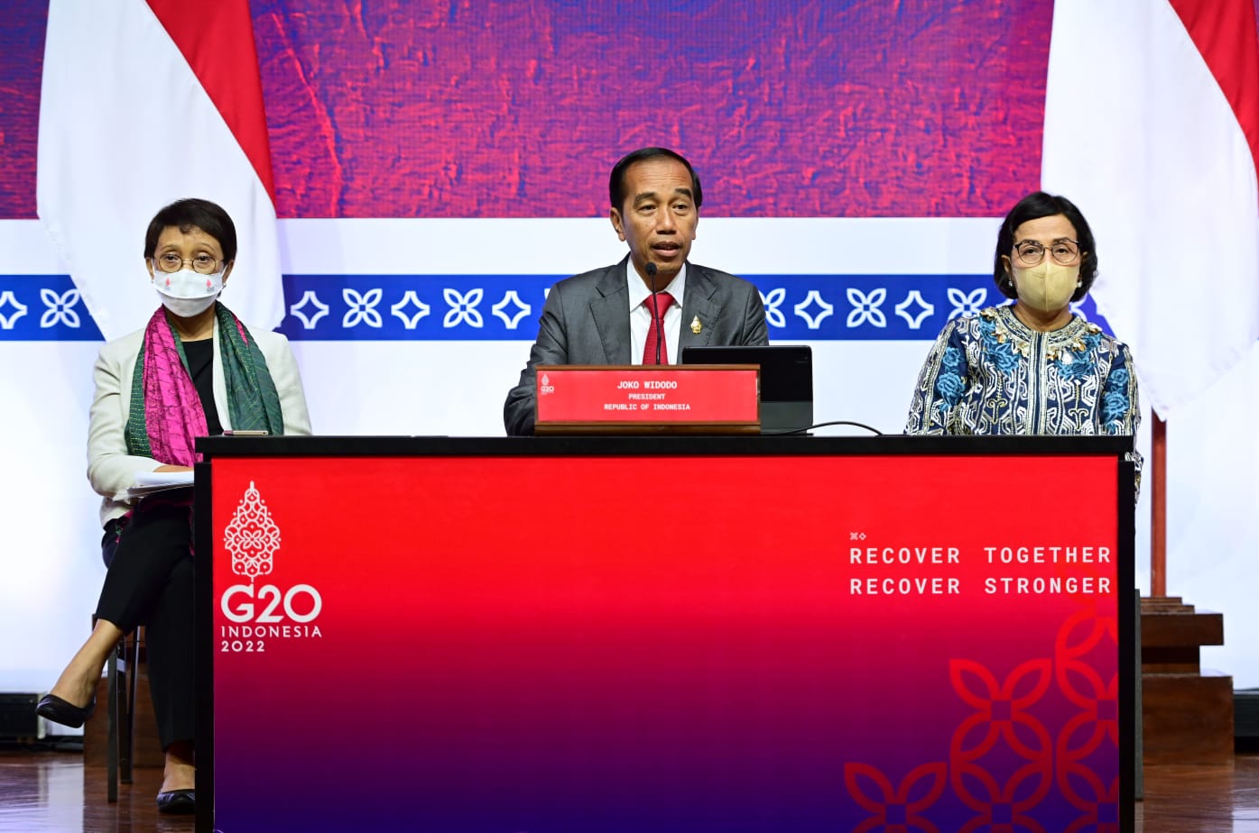 Presiden melanjutkan, perang di Ukraina telah mengakibatkan penderitaan masyarakat dan memperberat ekonomi global yang masih rampuh akibat pandemi yang menimbulkan risiko terhadap krisis pangan, krisis energi, dan potensi krisis finansial. Oleh karena itu, G20 membahas dampak perang terhadap kondisi perekonomian global.