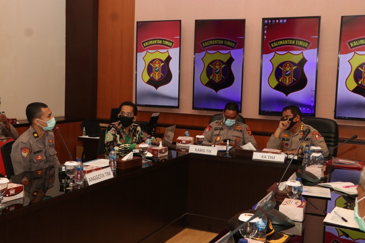 BALIKPAPAN, Inibalikpapan.com — Polda Kalimantan Timur menerima kunjungan Tim Pusat Penelitian dan Pengembangan (Puslitbang) Polri, di Ruang Posko Digital Mapolda Kaltim, Senin (09/11/2020).