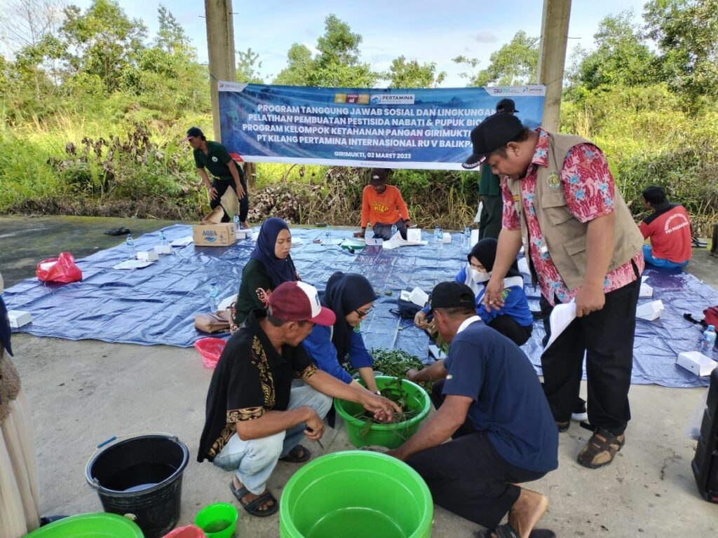 Pelatihan Pembuatan Pestisida Nabati dan Pupuk Biosaka diikuti Kelompok Tani Bina Usaha Muda, Penajam yang diadakan PT Kilang Pertamina Internasional Unit Balikpapan bekerjasama Dinas Pertanian Kabupaten Penajam Paser Utara sebagai pemateri. Pelatihan digelar di Jalan Strat 3, RT 10, Desa Giri Mukti, Kecamatan Penajam, Kamis (02/03/2023).