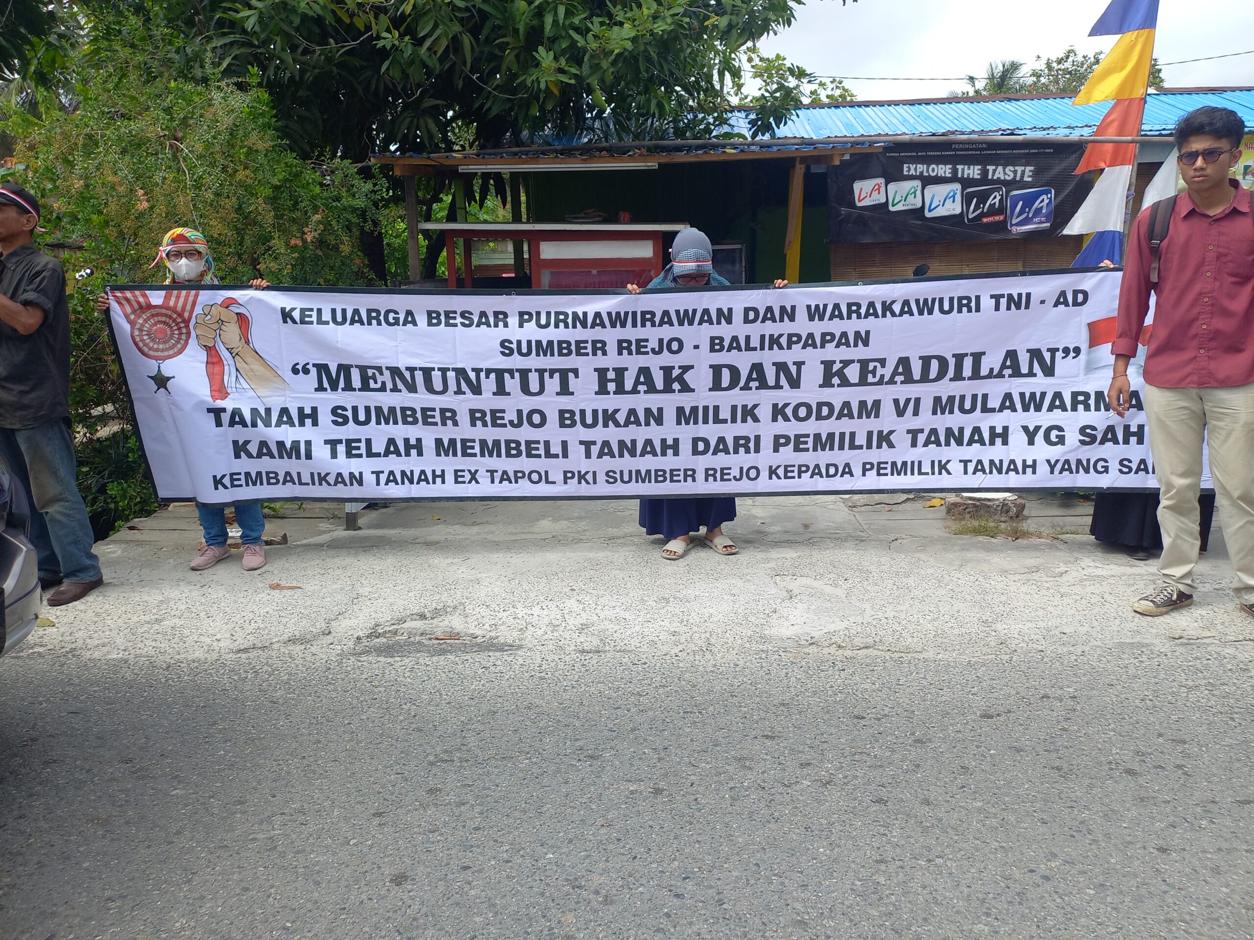 Aksi itu dilakukan bersamaan dengan pihak Pengadilan Negeri Balikpapan melakukan kunjungan lapangan ke lahan yang menjadi sengketa antara Kodam VI Mulawarman dengan warga.