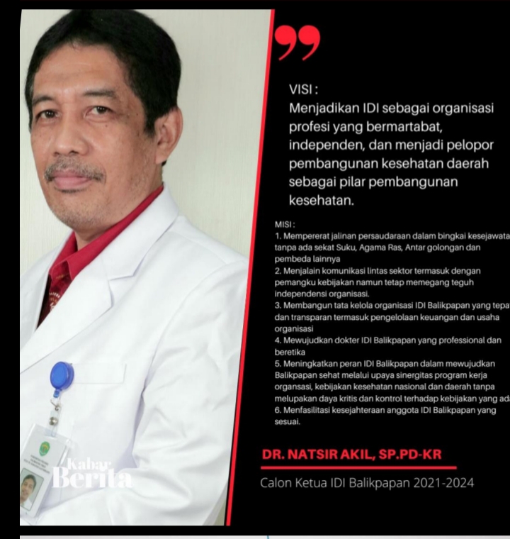 Dalam pemilihan Ketua IDI Kota Balikpapan yang baru periode 2021-2024 terpilih dr Natsir Akil menggantikan dr Drajat Wicaksono
