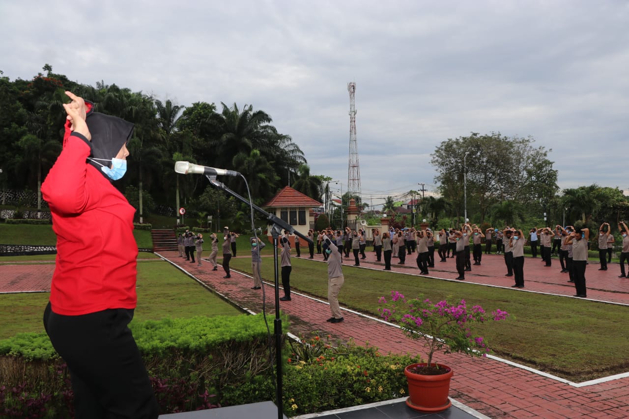 Laksanakan Senam AWS 3, Personel Polda Kaltim Jaga Imunitas Tubuh Selama Covid-19