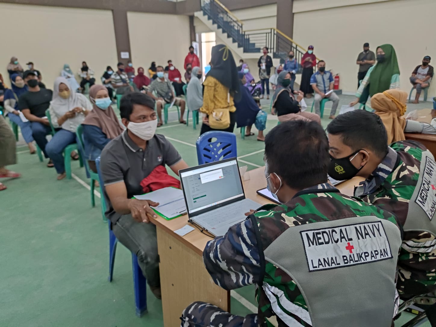 Vaksinasi massal dipimpin Ketua Tim Balai Kesehatan Lanal Balikpapan dan juga Ketua Tim Vaksinator, Paur Kesum BK Lanal Lettu Laut (K) dr. Muh. Ridwan.