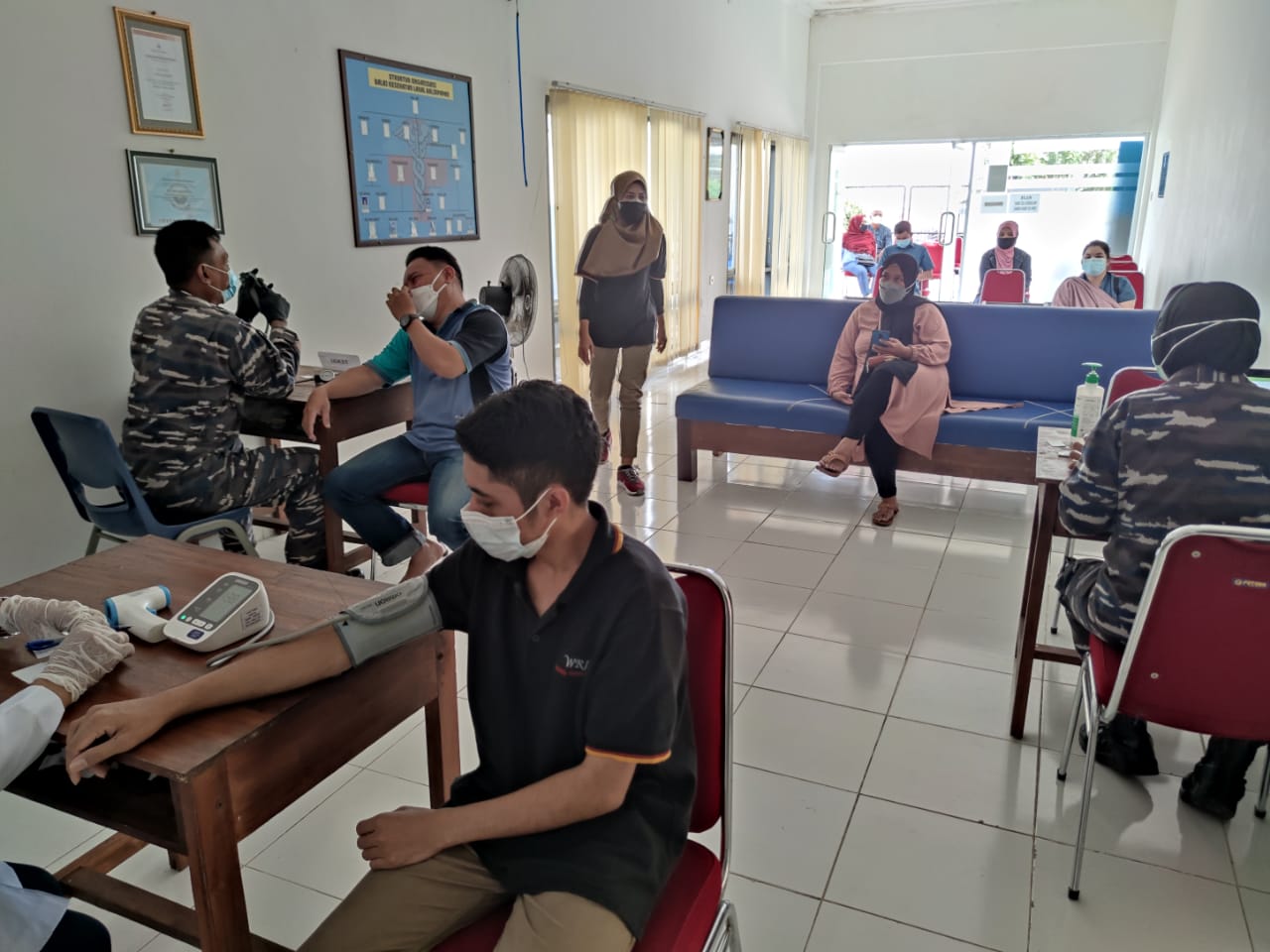 Vaksinasi dilakukan Tim Balai Kesehatan Lanal Balikpapan yang dipimpin Paur Kesum BK Lettu Laut (K) dr. Muh Ridwan. Sebanyak 80 dosis vaksin Sinovac yang disiapkan dengan sasaran masyarakt sekitar.