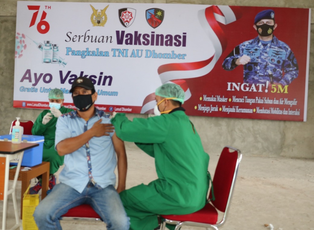 Danlanud Dhomber Balkpapan Kolonel Pnb Dedy Susanto mengatakan, vaksinasi massal sebagai upaya pencegahan penularan covud-19. Pemerintah juga gencar mengecar target vaksinasi.