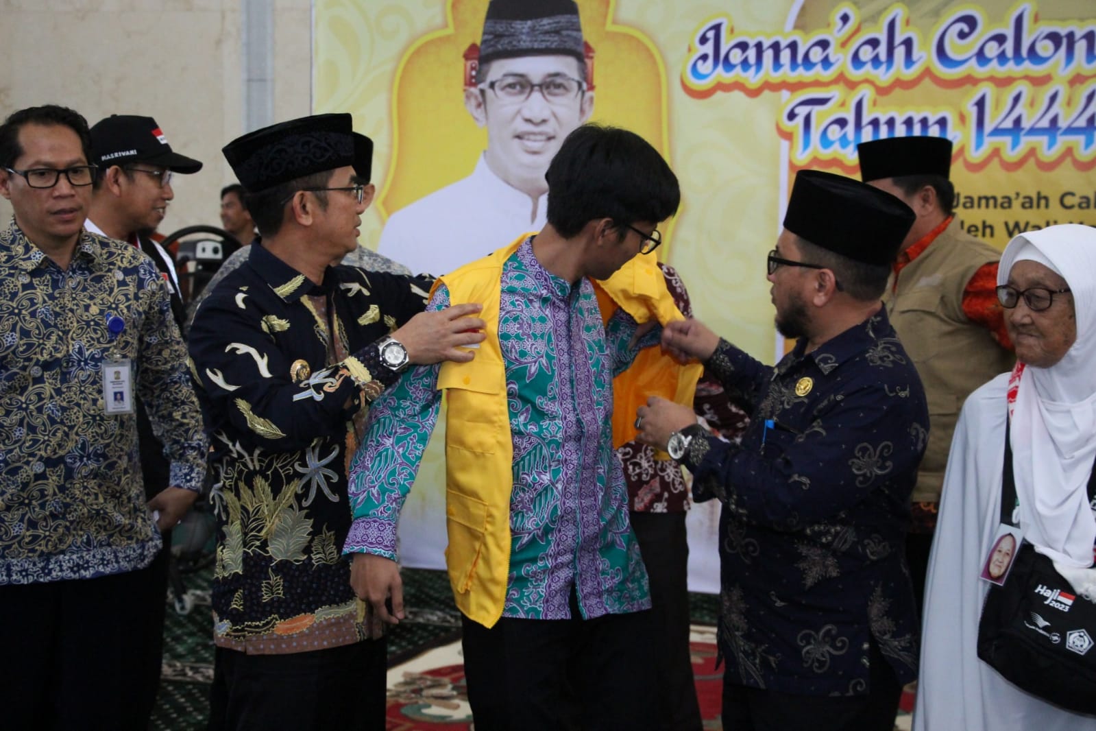 Pelepasan ditandai penyematan rompi bertuliskan Jamaah Haji Kota Balikpapan 2023 M/1444 H kepada calon jemaah haji tertua berusia 85 tahun dan termuda 27 tahun.