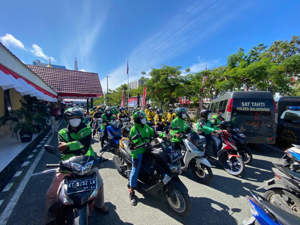 BALIKPAPAN, Inibalikpapan.com — Polresta Balikpapan bekerja sama dengan GO-JEK, Maxim, Grab dalam bakti sosial mendistribusikan bantuan bagi warga yang menjalani isoman dan terdampak pandemi Covid-19.