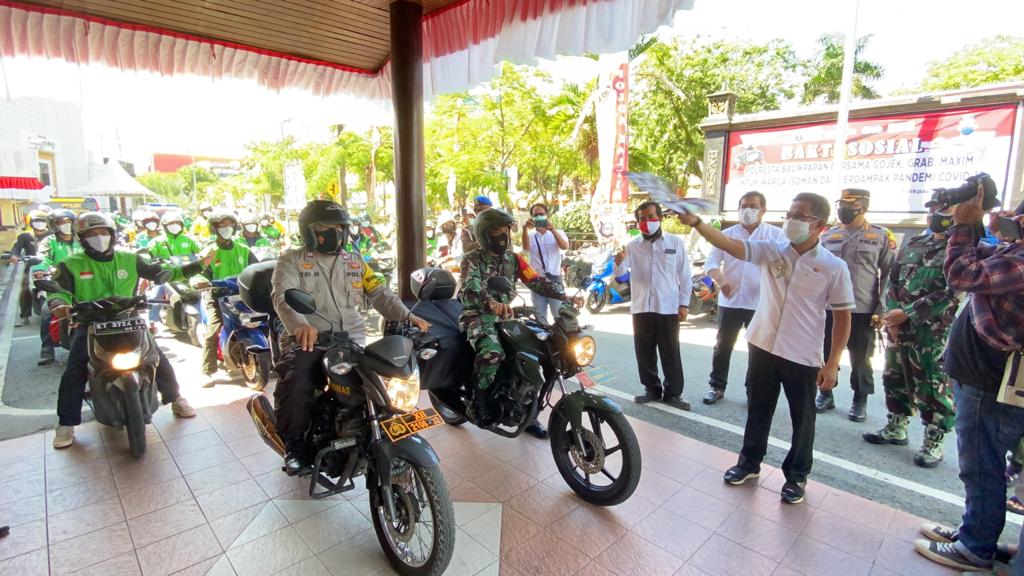 Peluncuran Bakti sosial dan pelepasan ojol untuk distribusi bantuan ini dilakukan wali kota Balikpapan H Rahmad Mas’ud bersama Forum Komunikasi Pimpinan Daerah Balikpapan, di Mapolresta Balikpapan, Jumat pagi (23/7/2021).